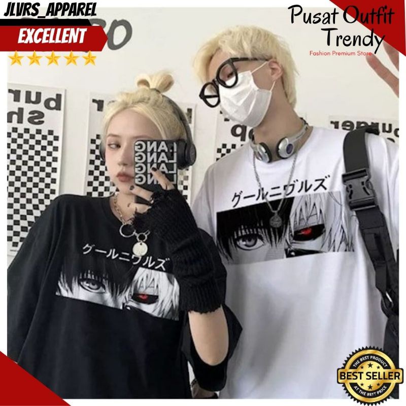 Beli kaos baju tshirt fashion atasan ootd outfit casual anime wibu oversize unisex cewek cewe cowok cowo wanita pria korean style tomboy motif model trend .